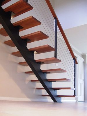 2.3. Cầu thang xương cá (Xương sắt – Bậc gỗ)