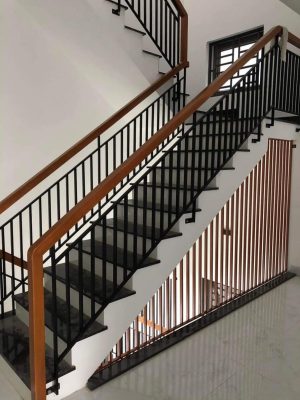 Sự kết hợp giữa nét ấm áp của gỗ (tay vịn) và sự chắc chắn của sắt (song chắn) tạo nên vẻ đẹp tân cổ điển, vừa sang trọng vừa gần gũi.